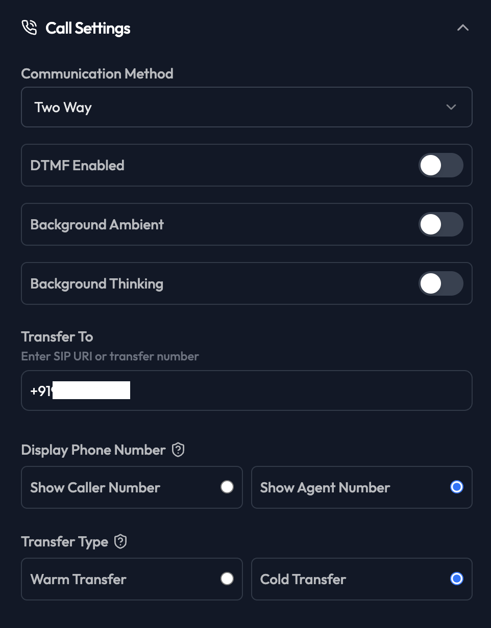 - Cold Transfer: Agent transfers and disconnects