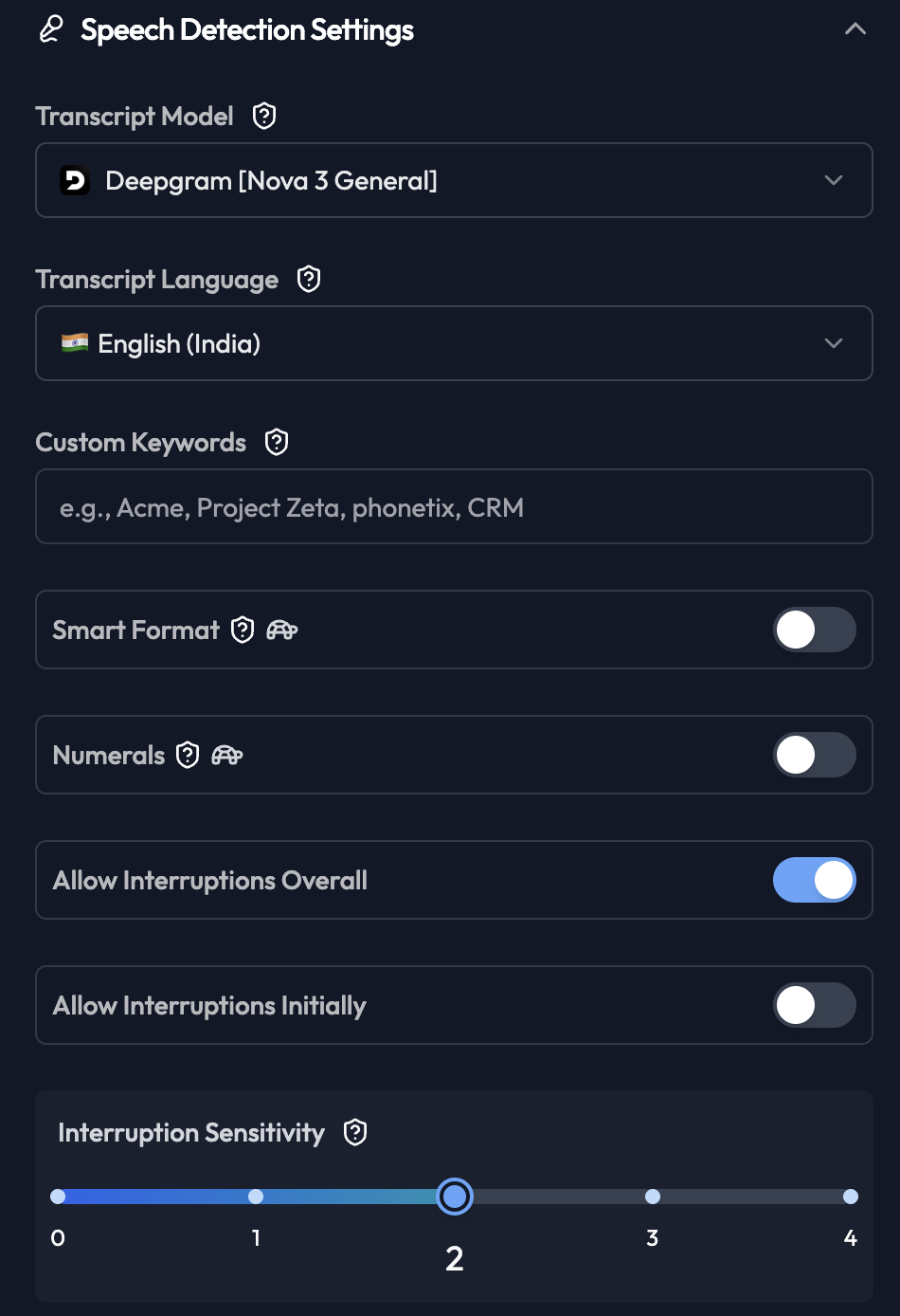 Select the speech-to-text engine:- Deepgram [Nova 3 General]: Best accuracy for general conversations
