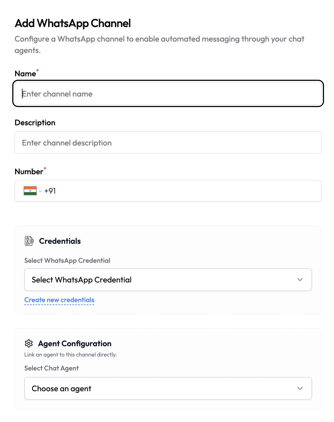 | Name | Text | Yes | A friendly name for this channel (e.g. Support WhatsApp). |