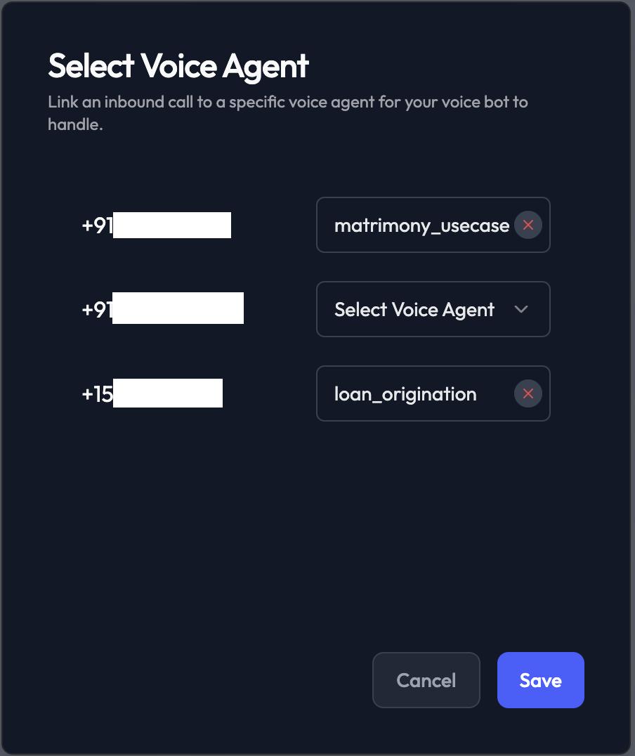 - Click on Map Voicebot Usecase and select the voice agent you want to use while accepting the calls.