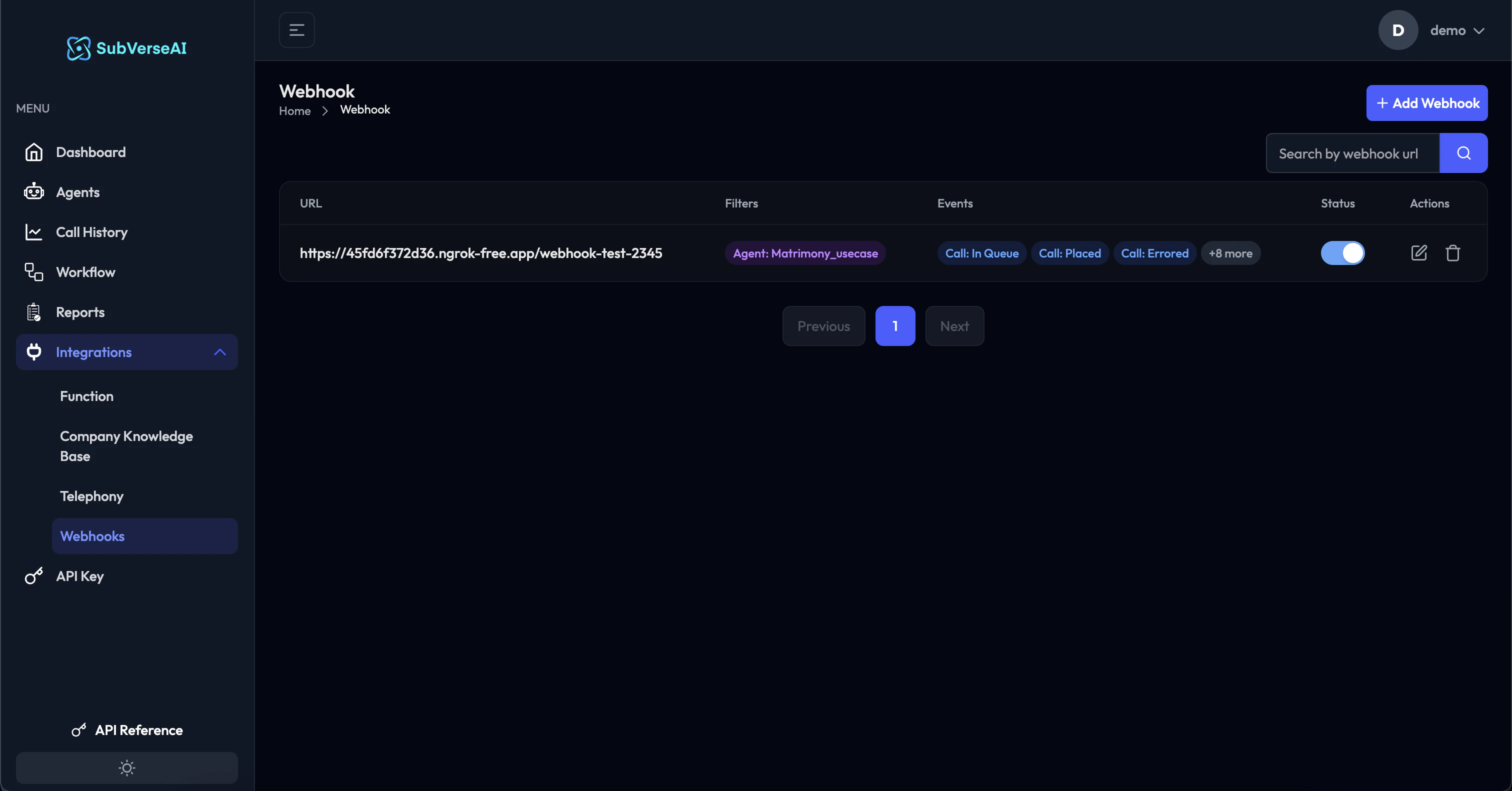 Webhooks allow your applications to receive real-time notifications when specific events occur in SubVerse AI, such as call completions, workflow executions, or agent interactions. This enables you to build responsive integrations and automate workflows based on SubVerse events.
