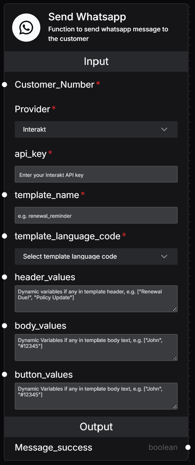 - Message_success: Confirms if the WhatsApp message was successfully sent -