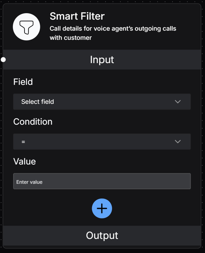 - Field – Select a field to apply the filter. Multiple fields can also be linked from outputs of other blocks.