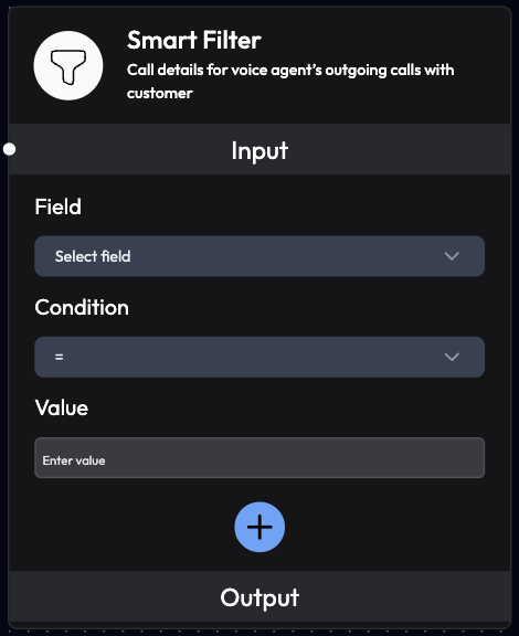The Smart Filter Node allows you to filter data and create conditional logic in your workflows. It evaluates data against specified conditions and routes workflow execution based on the results.